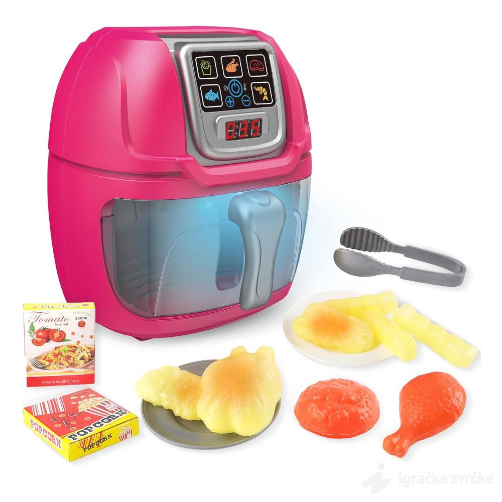 Ovaj set sa igračkom fritezom na vruć vazduh omogućava deci da oponašaju proces pripreme hrane na zabavan i jednostavan način. Friteza ima svetlosne efekte, simulaciju rada i tajmer koji se može „podesiti“ dodirom.