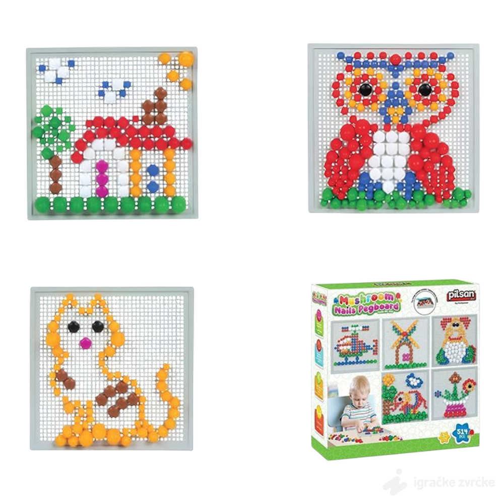 Ova edukativna bockalica omogućava deci da kroz igru stvaraju razne slike i oblike. Set sadrži veliki broj šarenih delova koje mališani ubacuju u tablu i tako prave životinje, objekte ili sopstvene kreativne dizajne. Igra je jednostavna, ali veoma zanimljiva i podstiče dugotrajnu koncentraciju.