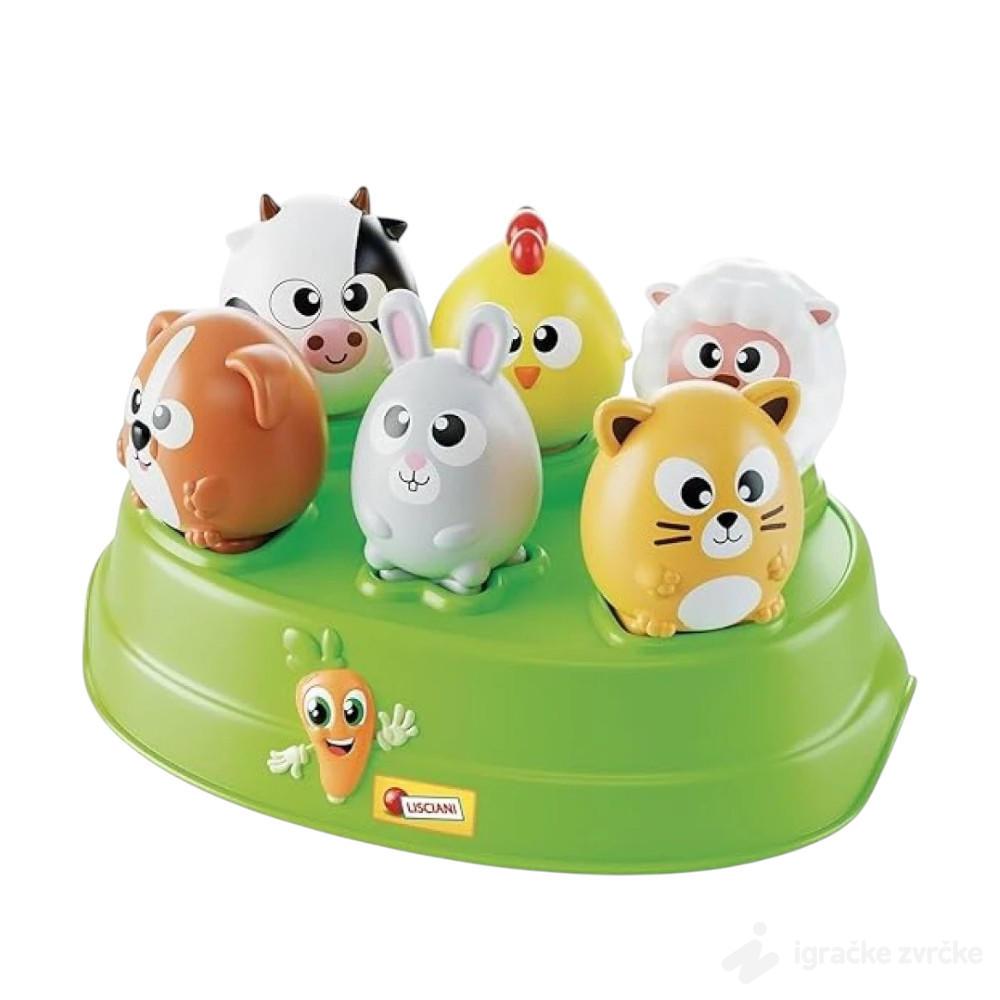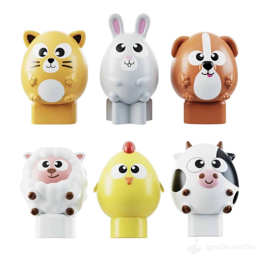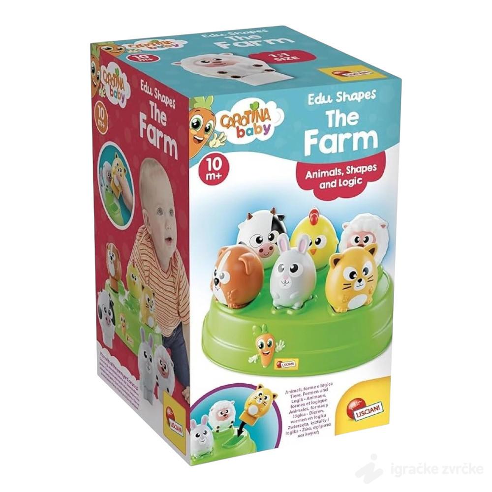 Carotina Baby Edu Shapes The Farm je vesela edukativna igračka koja spaja zabavu i učenje kroz šarmantne životinje sa farme. Set sadrži šarene figurice u obliku krave, zeca, pileta, psa, ovce i mačke, koje deca treba da ubacuju u odgovarajuće otvore na postolju. Dizajnirana je posebno za najmlađe, sa oblim ivicama i prijatnim bojama koje privlače pažnju i podstiču igru.