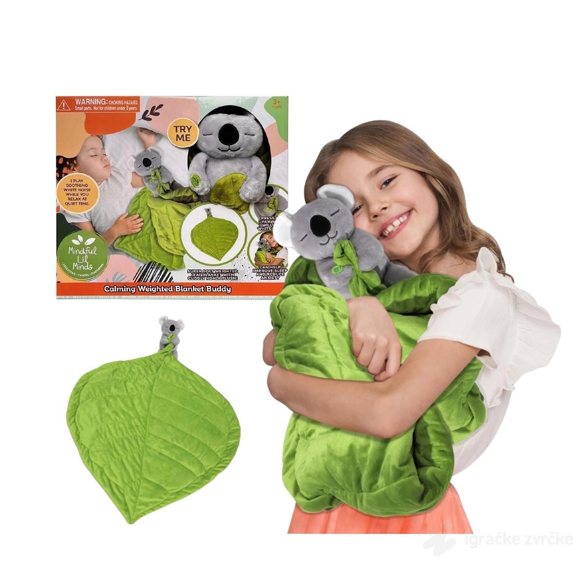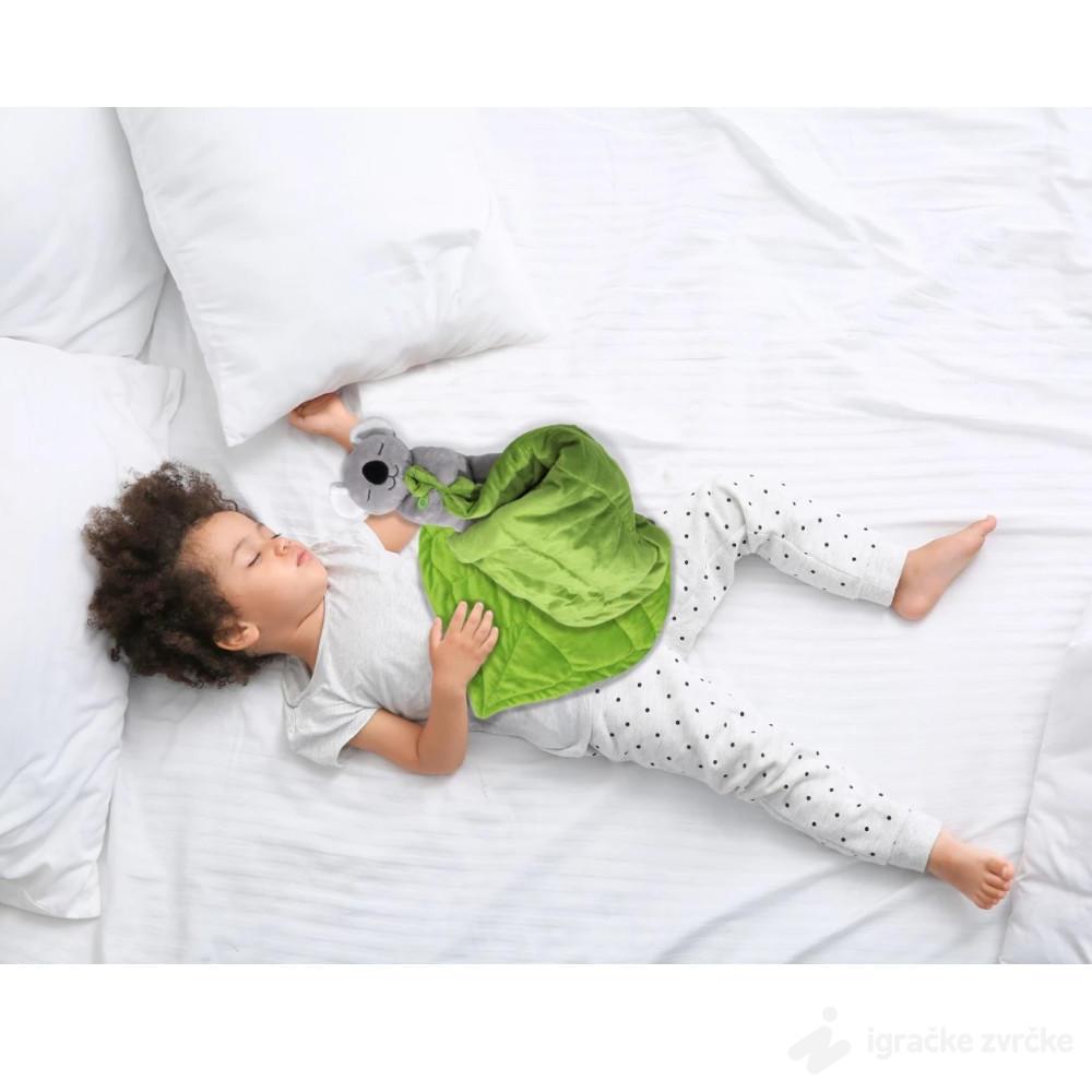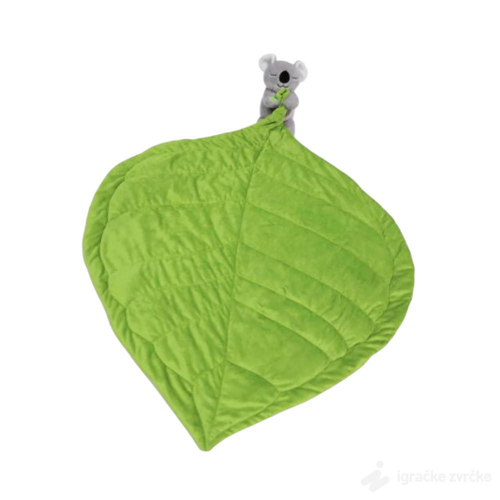 Ova preslatka plišana koala dolazi zajedno sa mekanim ćebencetom u obliku zelenog lista i pravi je mali saveznik za mirne trenutke tokom dana i noći. Dizajnirana je tako da pruži detetu osećaj sigurnosti, nežnosti i topline, pa postaje omiljeni pratilac za uspavljivanje ili vreme odmora.