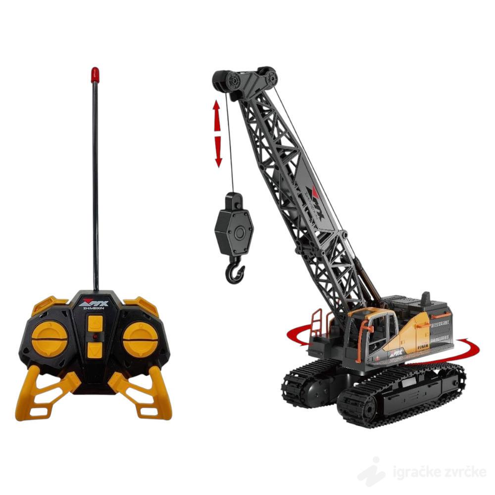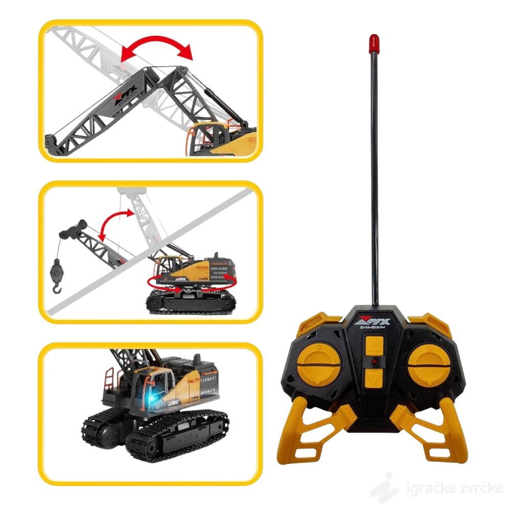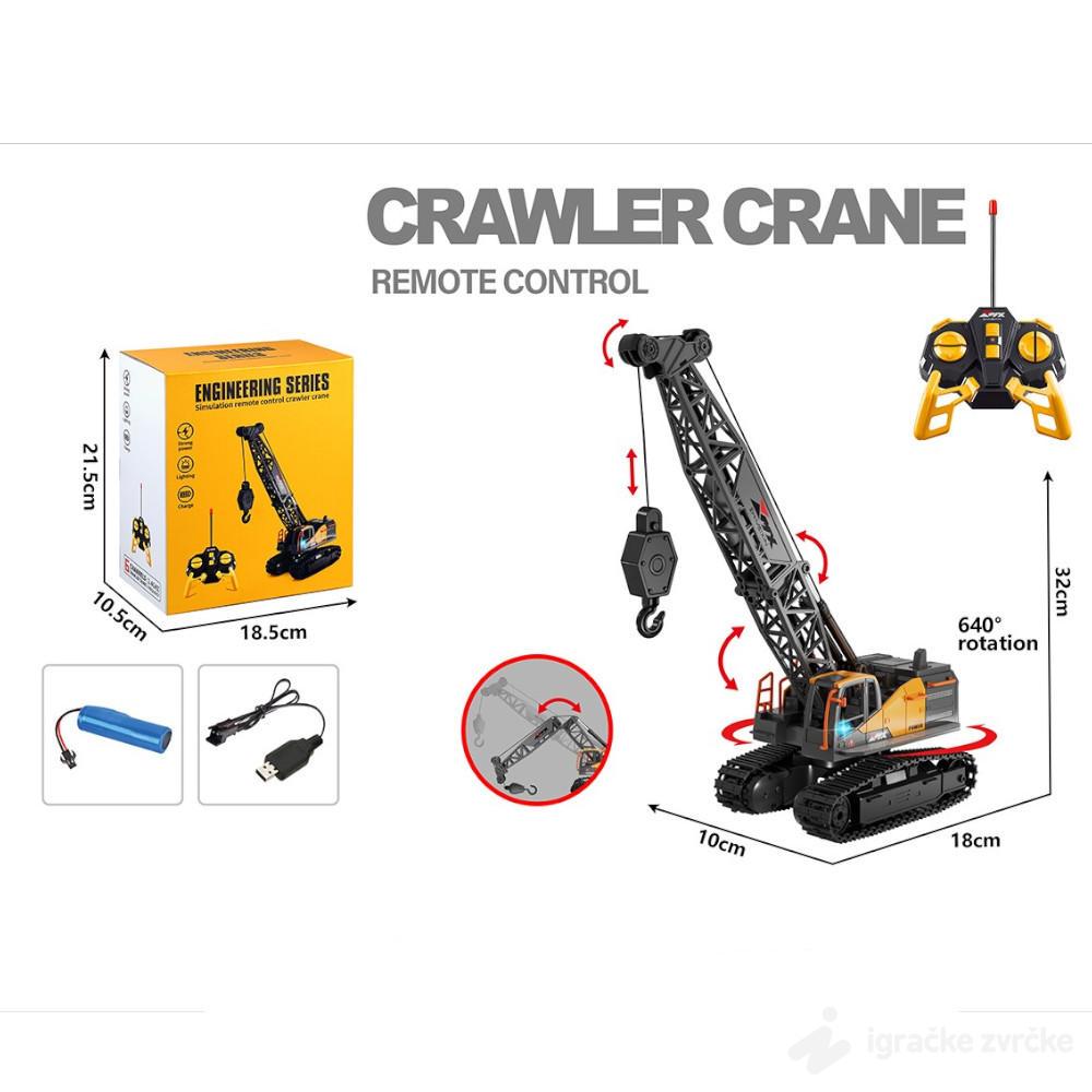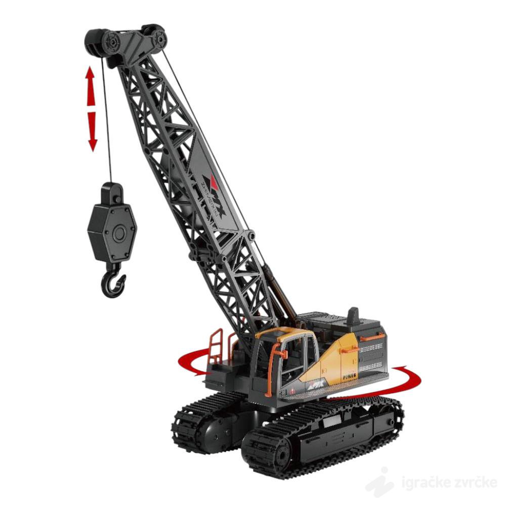 RC guseničar dizalica je realističan građevinski model na daljinsko upravljanje, idealan za male ljubitelje mašina i gradilišta. Sa visinom od 32 cm i mogućnošću rotacije od čak 640°, ova dizalica pruža autentično iskustvo upravljanja. Opremljena je daljinskim upravljačem koji kontroliše kretanje gusenica, podizanje i spuštanje kuke, kao i rotaciju krana. Napaja se punjivom baterijom sa USB kablom za jednostavno punjenje.