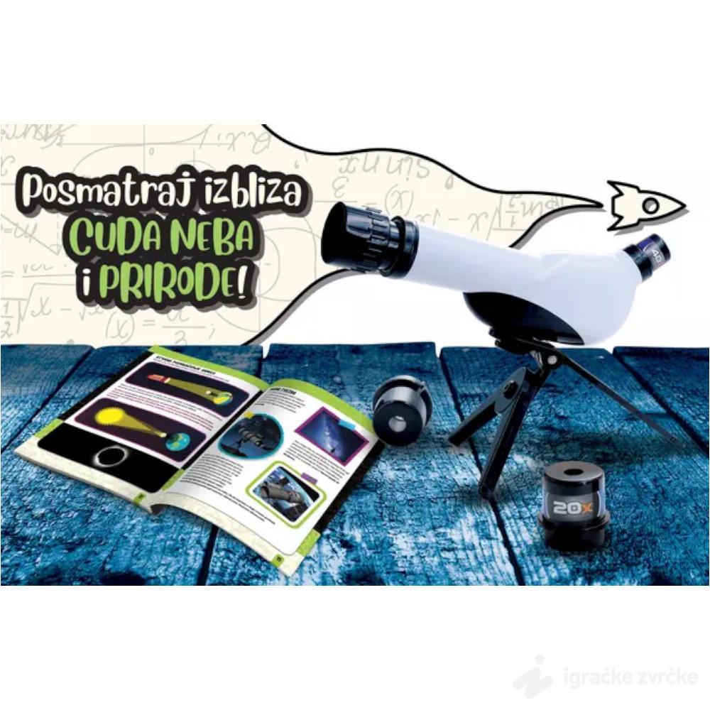Teleskop „I’m a Genius Science“ je edukativni set namenjen deci koja žele da istražuju svemir i prirodu izbliza. Uz pomoć teleskopa mogu da posmatraju Mesec, zvezde, ali i udaljene objekte u prirodi.