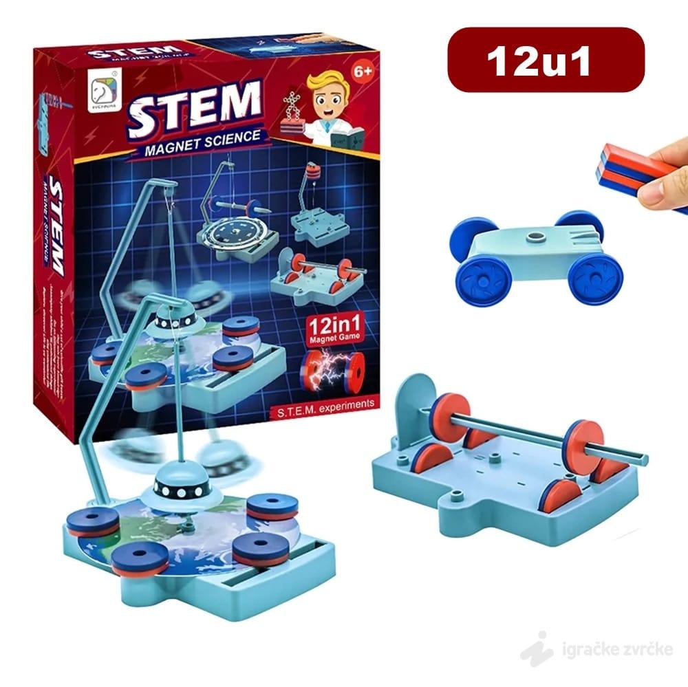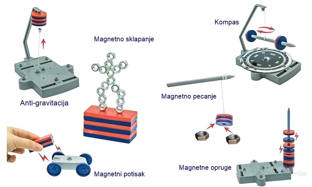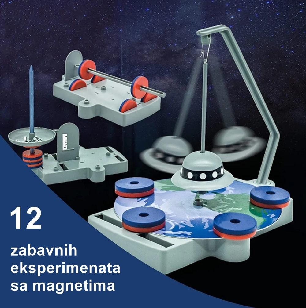 Ovaj komplet sadrži materijale za izvođenje 12 zabavnih magnetnih igara i eksperimenata. Neki od njih su magnetna opruga, antigravitacia, magnetna atrakcija i razni drugi. U kutiji dobijate i uputstvo kako bi iskoristili komplet na najbolji mogući način.