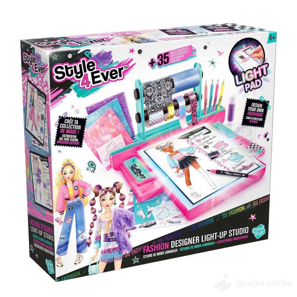 Ovaj kreativni modni studio omogućava deci da se oprobaju u ulozi modnog dizajnera. Uz pomoć svetleće table, deca mogu da precrtavaju modele, dodaju garderobu uz pomoć šablona, biraju materijale, ukrašavaju dizajne i kreiraju sopstvene kolekcije.