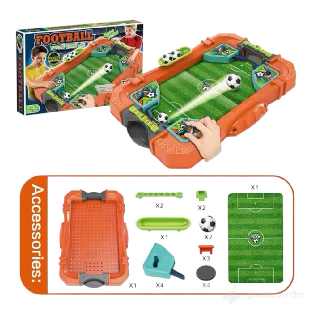 Ova stona fudbal igra donosi pravu malu fudbalsku avanturu direktno na sto! Deca mogu da se takmiče jedan na jedan koristeći male džojstike za upravljanje igračima, dok lopta brzo leti preko terena kao u pravoj utakmici.