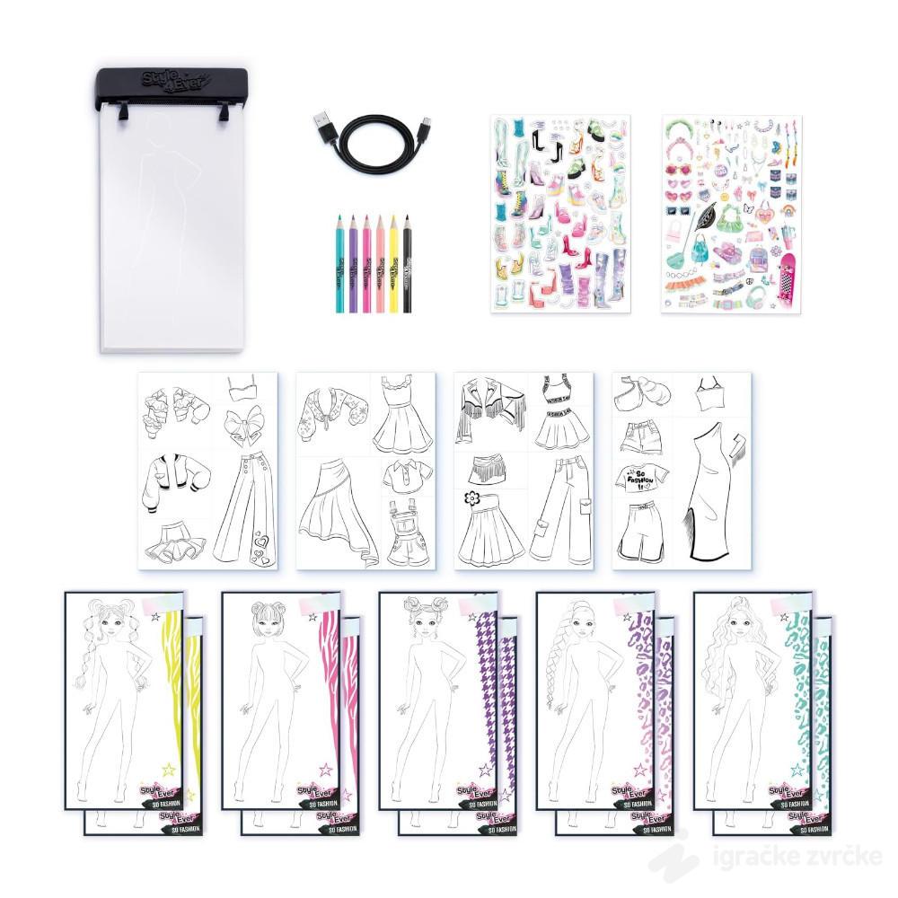 Style 4 Ever Fashion Designer Light Pad je sjajan kreativni set za decu koja vole modu, crtanje i maštanje o sopstvenim kreacijama.