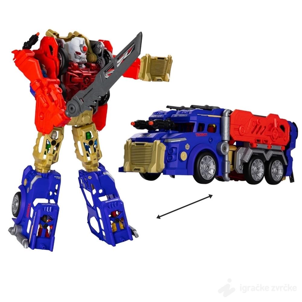 Ovaj transformabilni robot predstavlja fantastičan spoj velikog formata i bogate, interaktivne igre. Sa visinom od 61 cm, robot dominira prostorom i pruža potpuno drugačiji nivo doživljaja, dok se jednostavnom transformacijom pretvara u kamion koji deca mogu da guraju, voze i uključuju u svoje misije.