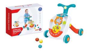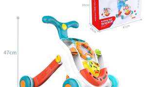 Ova hodalica za bebe ima interaktivnu tablu koja uključuje razne elemente: dugmad, zvečku sa ogledalom, poluge, pogodi oblik, loptice i druge delove koji razvijaju motoriku, čula i pozivaju na igru. Prohodavalica poseduje i zvučne i svetlosne efekte.