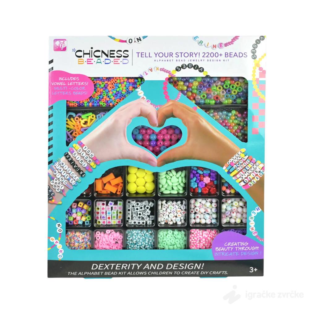 Ovaj bogati kreativni set sadrži više od 2200 perlica, uključujući slova, brojeve i razne oblike, što omogućava deci da prave svoju unikatnu nakit kolekciju. Set je pregledno organizovan u odeljke pa se perlice lako koriste i kombinuju.