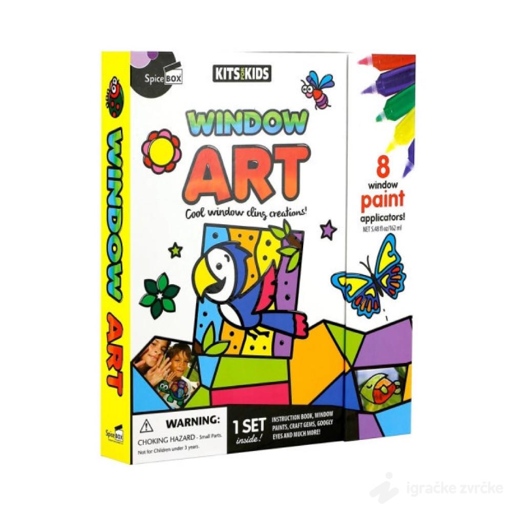 Set za oslikavanje prozora pretvara svaku staklenu površinu u kreativno platno za male umetnike. U kutiji se nalazi sve što je potrebno – boje za staklo, aplikatori, ukrasi i uputstvo sa zabavnim idejama. Deca mogu praviti šarene motive, skidati ih i ponovo lepiti, što donosi beskrajnu zabavu i maštovite kreacije.