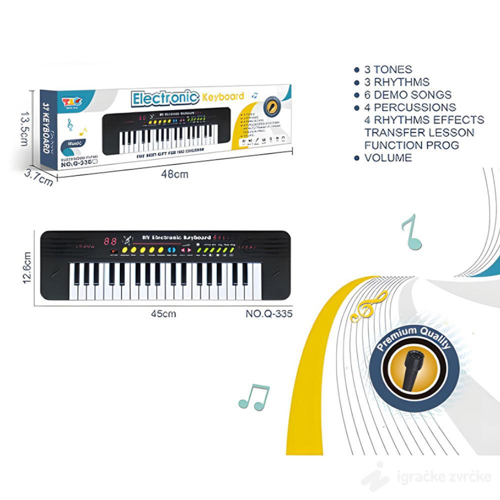 Sa bogatim izborom funkcija poput različitih tonova, ritmova, demo pesama i perkusija, dete može da stvara sopstvene melodije, prati ritam i razvija muzički sluh.
