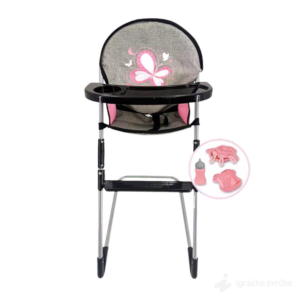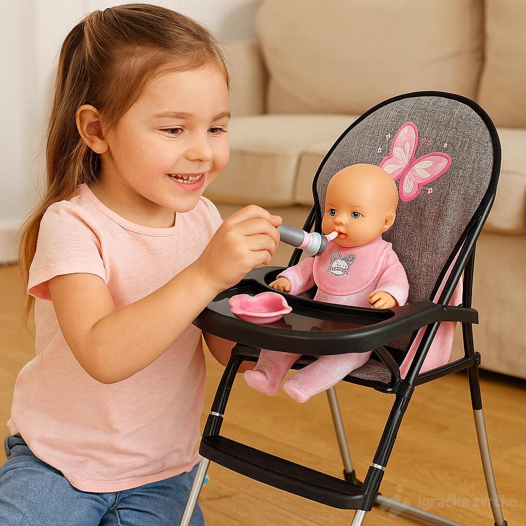 Savršena stolica za hranjenje lutaka donosi realističnu igru i zabavu. Uz dodatke poput flašice i pribora, deca mogu uživati u potpunom iskustvu hranjenja. Podstiče igru uloga, razvija maštu i empatiju kod mališana. Stabilna i lagana konstrukcija čini je bezbednom i lakom za pomeranje. Idealan poklon za male mame i tate koji vole da brinu o svojim bebama-lutkama.