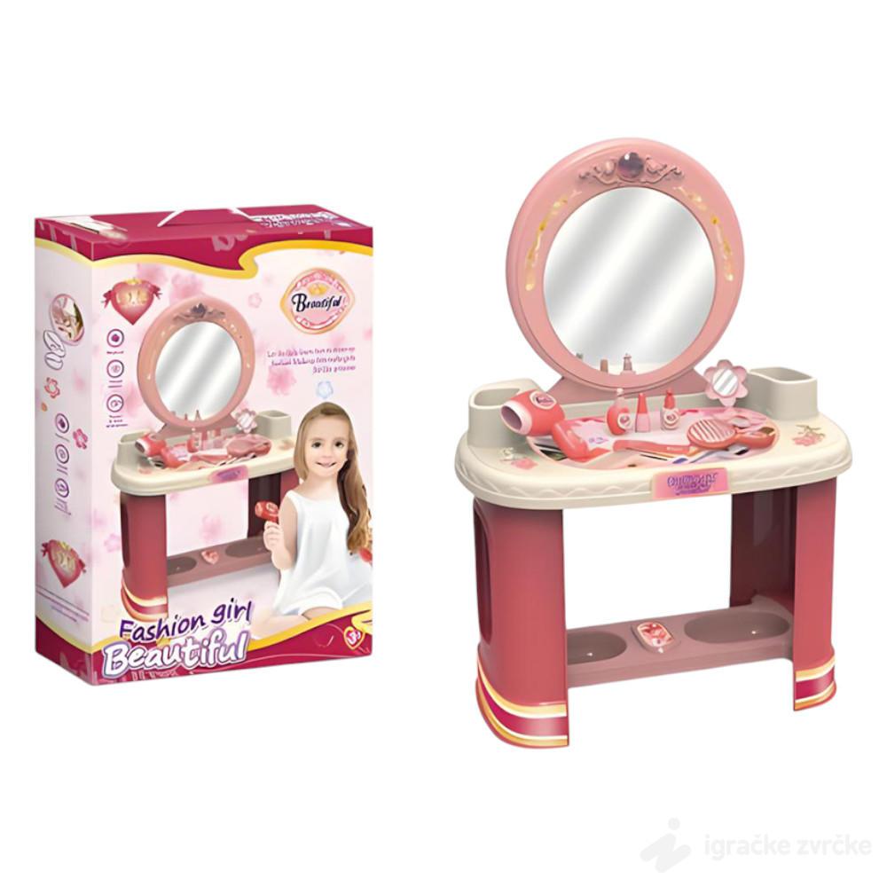 Ovaj dečiji toaletni sto pruža mališanima pravo iskustvo igre ulepšavanja. Sa velikim ogledalom i raznim dodacima poput fena, četke i kozmetike, deca mogu da uživaju u igri uloga i razvijaju maštu.