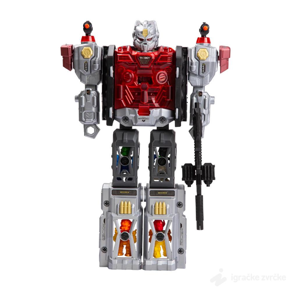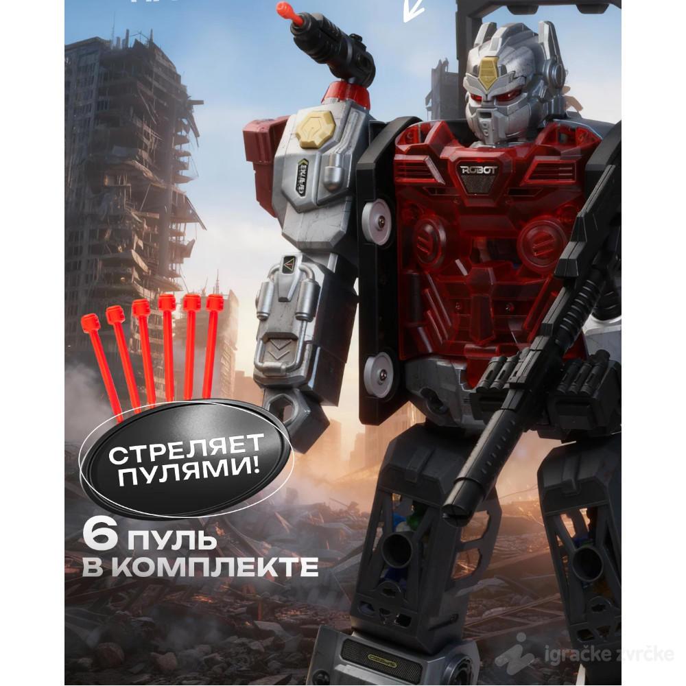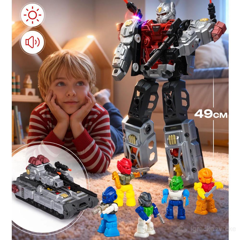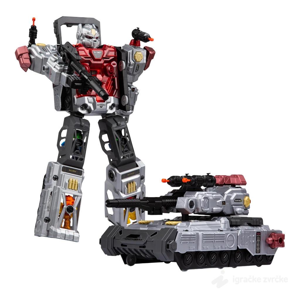 Ovaj transformabilni robot–tenk je prava akciona igračka koja spaja snagu, tehnologiju i maštu. Jednim potezom se pretvara iz robota u tenk, pružajući deci više načina za igru.